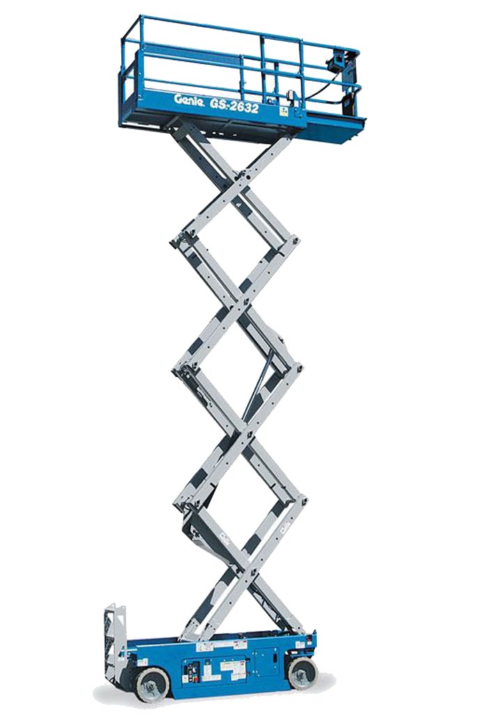The quiet and emission-free Genie GS™-3232 slab scissor lift is ideal for operation in sound-sensitive environments. With front-wheel drive and zero inside turning radius, it offers exceptional maneuverability in tight spaces, making it suitable for various indoor and outdoor construction tasks on firm, level surfaces.